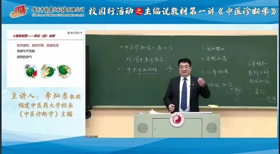 5月12日,由国家中医药管理局教材办公室、中国中医药出版社联合各高等中医药院校举办“主编说教材”活动正式启动。国家中医药管理局副局长、党组成员秦怀金为“主编说教材”活动点赞。福建中医药大学作为第一讲的联合主办单位,由全国中医药行业高等教育“十四五”规划教材《中医诊断学》主编、校长李灿东教授以“《中医诊断学》教与学”为主题为全国广大师生开讲。