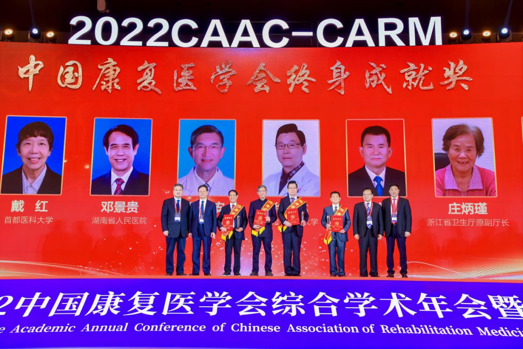 ▲向中国康复医学会终身成就奖代表颁发荣誉证书